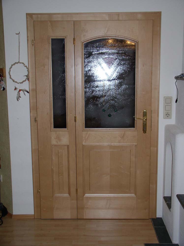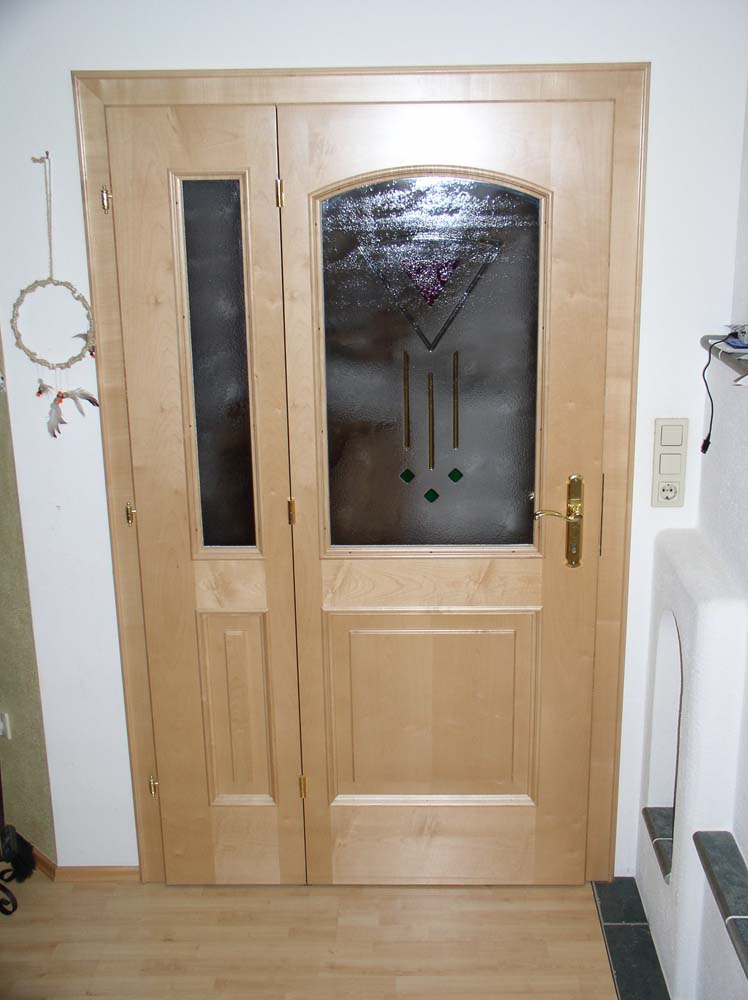 Eine Kombination aus Holz und Glas bilden die Friesglastüren, die besonders viel Licht bringen. Alle Türen werden so ausgeführt, dass sie sich nicht verziehen können.